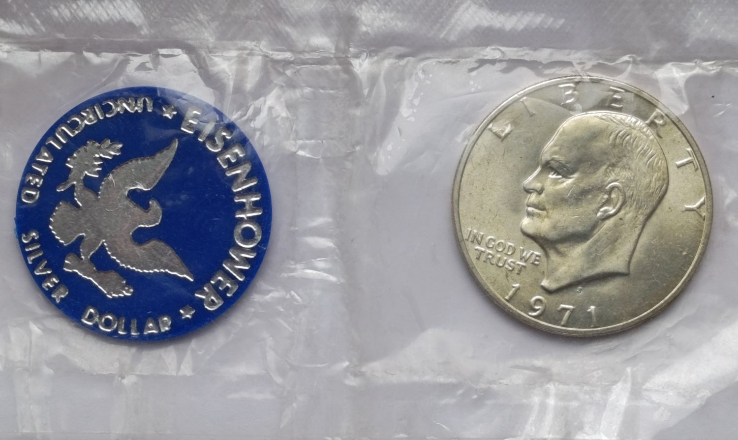 Описание Доллар Эйзенхауэра 1 доллар США 1971 Двор "S" в запайке с жетоном