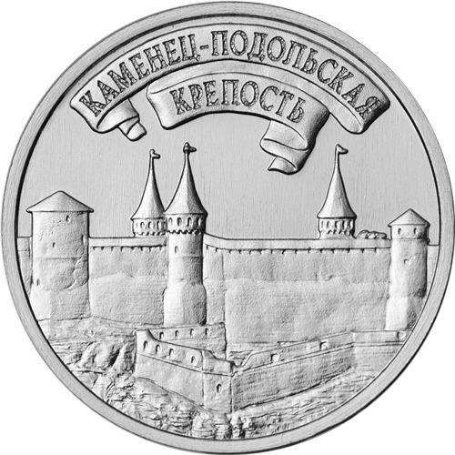 Реверс:в центре – изображение Каменец-Подольской крепости; вверху по кругу – надпись в две строки «КАМЕНЕЦ-ПОДОЛЬСКАЯ КРЕПОСТЬ»