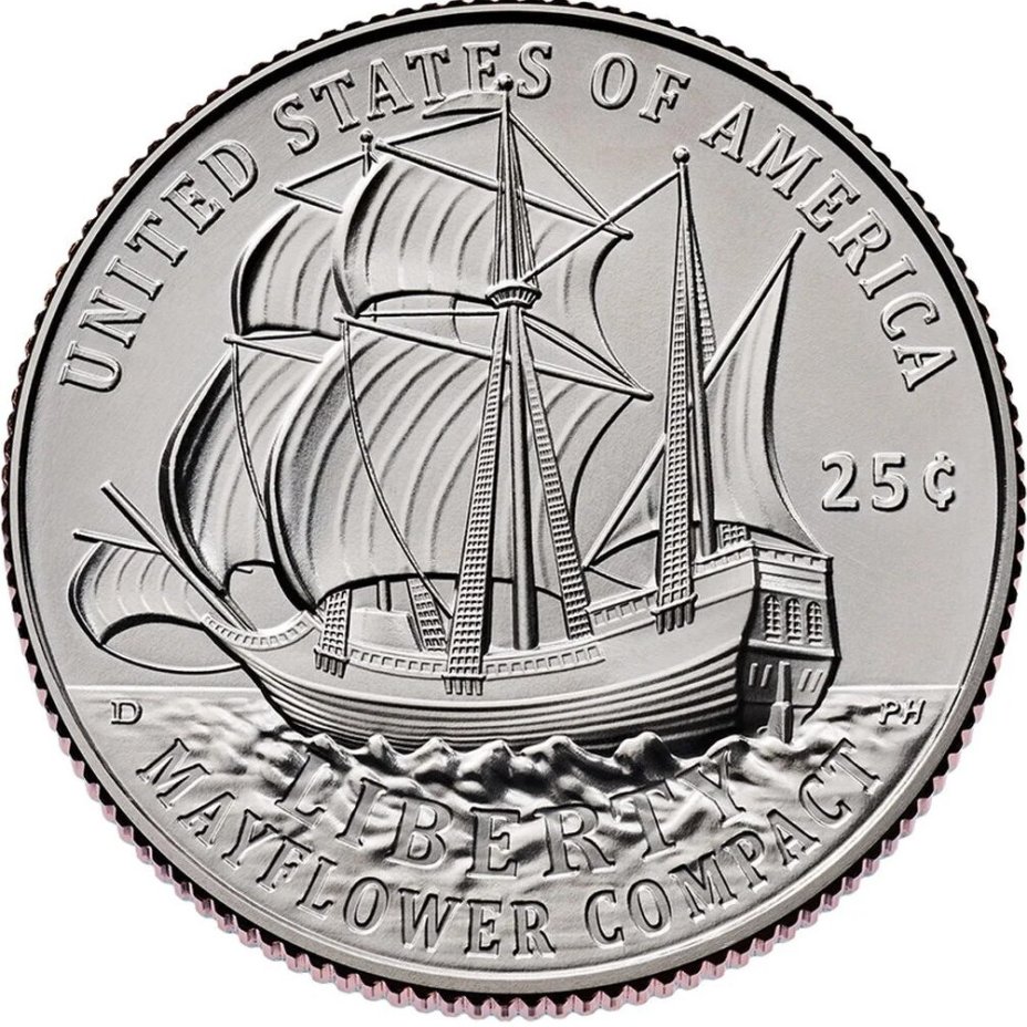 Описание Мэйфлауэр 250 лет независимости США 25 центов США 2025 Монетный двор на выбор