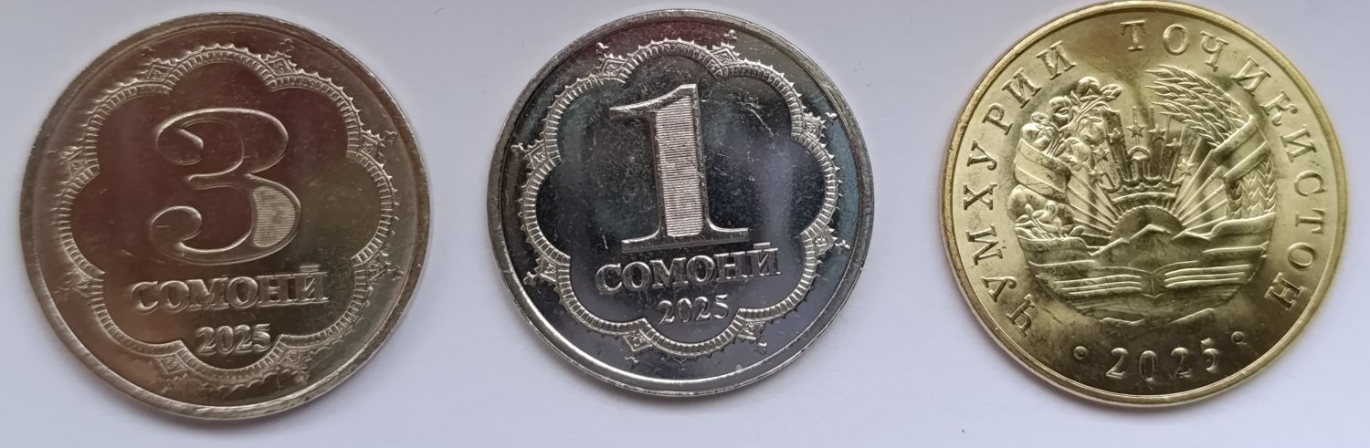 Описание Набор монет 50 дирам, 1, 3 сомони Таджикистан 2025